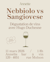 Dégustation de vin, repas gastronomique, humour, spectacle, voici les prochains événements que Annette vous prépare.