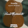 Annette vous proposera un menu élaboré par chef Marc-André Jetté accompagné d’un accord élaboré par Hugo Duchesne avec les vins du domaine Pearl Morissette. BILLETS EN LIGNE